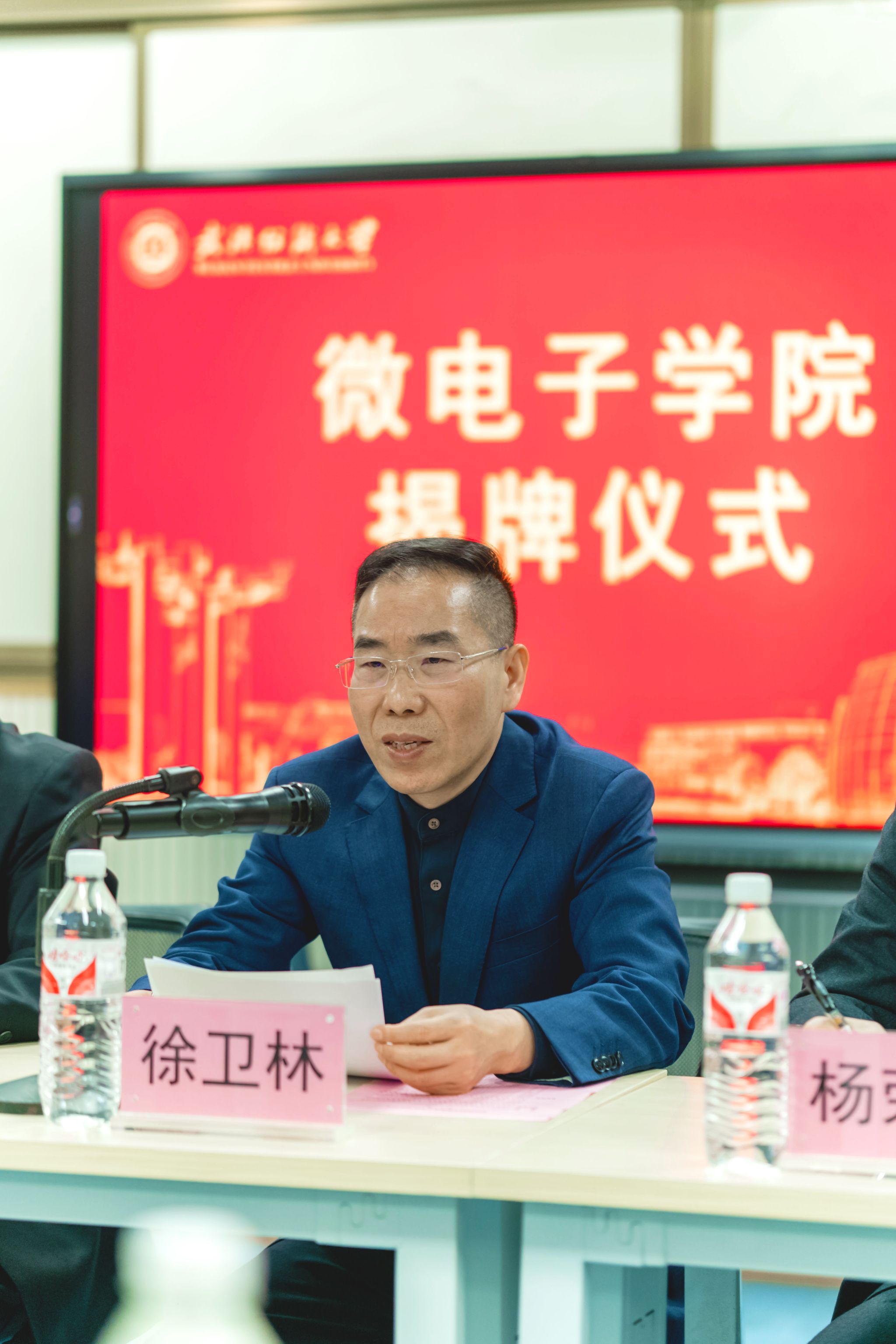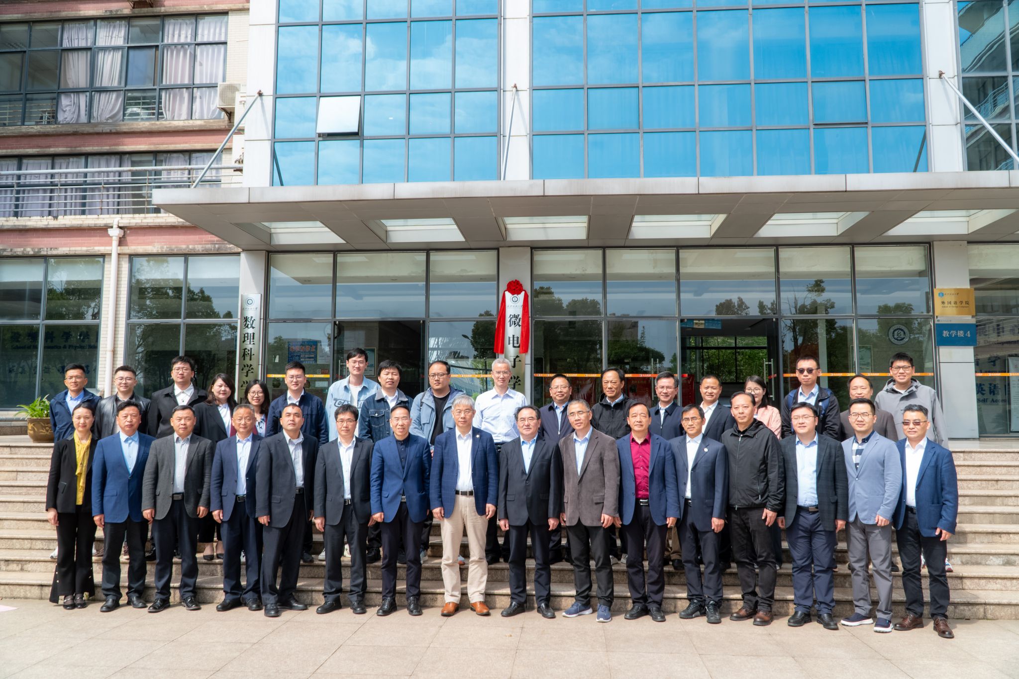 公司党委书记田辉玉教授、董事长徐卫林院士为微电子公司揭牌。