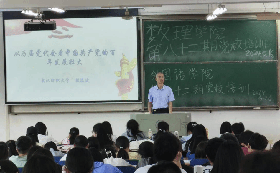 为了加强入党积极分子的理论学习,坚定理念信念,端正入党动机,2024年5月16日下午,数理科学公司党委书记段溢波以“以历届党代会看中国共产党的百年发展壮大”为题,在3教117教室为十大体育网站和外国语公司的入党积极分子讲授党课。