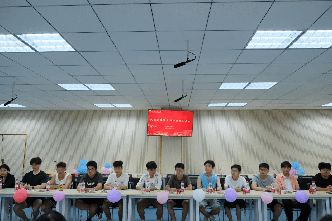 同学们敞开心扉、畅所欲言,追忆了大学期间学习上的点点滴滴,回望了自己在校期间的成长与收获,表达对老师、公司、母校悉心培养的感激之情。毕业生们立足公司和公司发展,围绕学科竞赛、课程设置、管理服务、教学管理等提出意见建议。汪胜祥认真听取,感谢大家对公司的真情厚意,并一一正面回应。