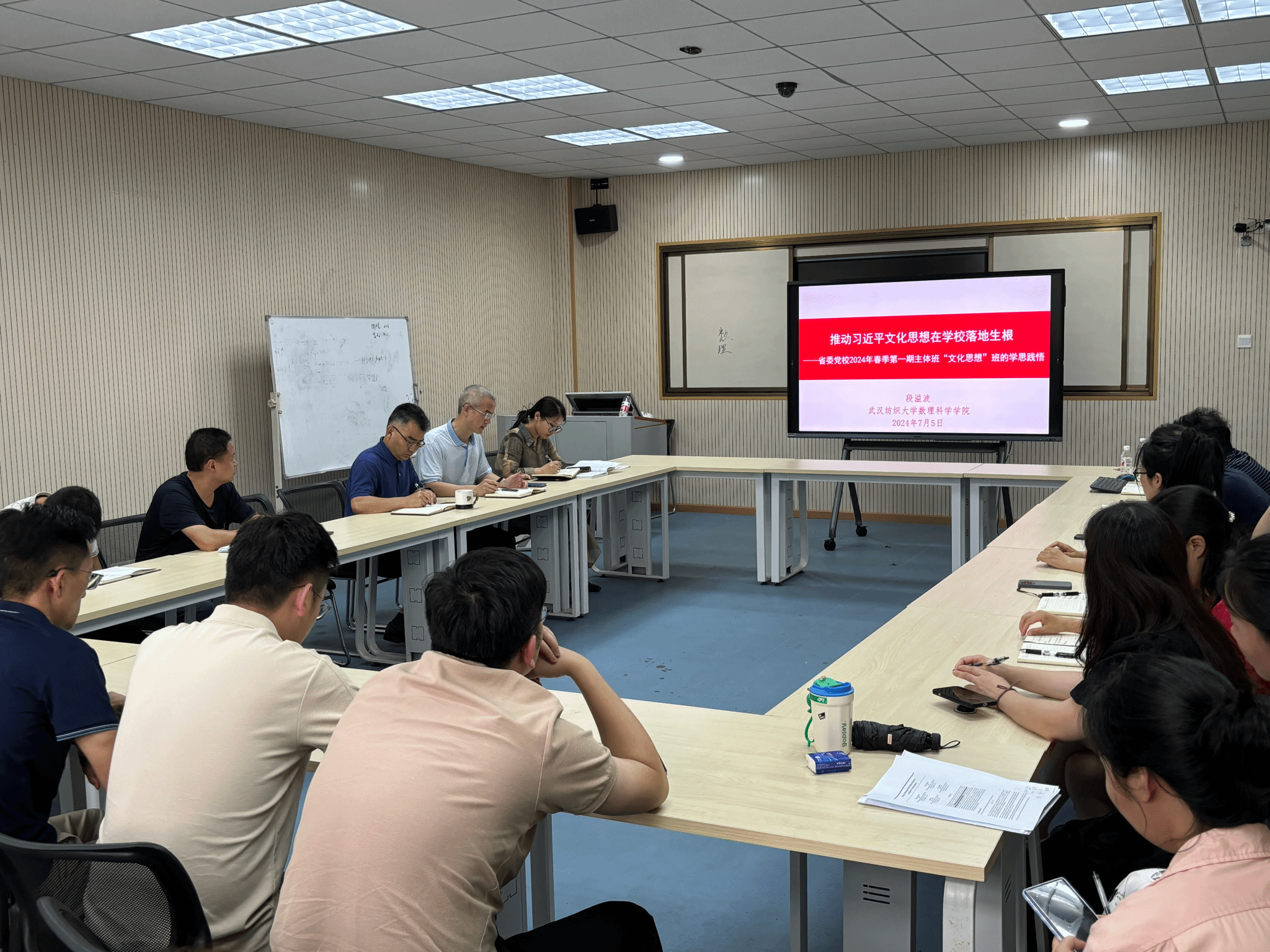 2024年7月4日下午,十大体育网站在崇文楼206室举办习近平文化思想专题班暨党委理论学习中心组第八次集体学习,公司党委委员、系(中心、办)主任、党支部书记、党支部委员、教授委员会主任、教学督导组长参加。公司党委书记段溢波以《推动习近平文化思想在公司落地生根》为题做辅导报告。
