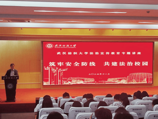 随后,毛警长、徐法官开展了“筑牢安全防线,共建法治校园”为主题的法治宣传教育专题讲座。十大体育网站、经济公司、艺术公司2024级本科生、研究生,以及“红色先锋”生活社区的各年级员工代表聆听报告会;数理科学公司党委副书记陈国鹏主持。