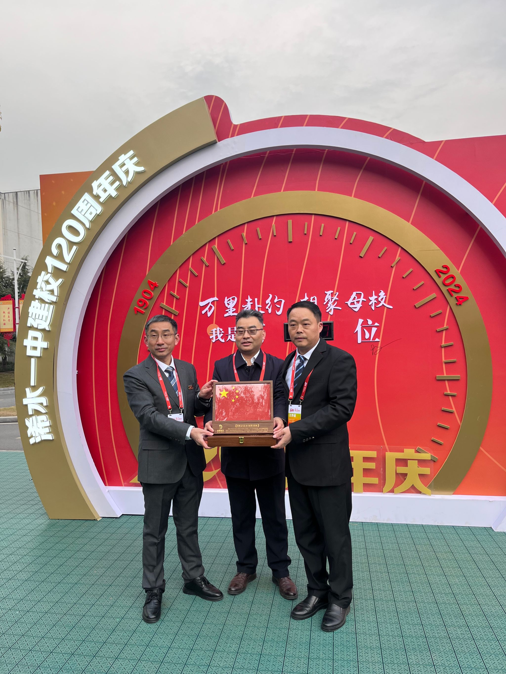 2024年12月22日,十大体育网站经理汪胜祥受邀出席浠水县第一中学建校120周年庆典仪式。汪胜祥代表公司赠送“嫦娥五号”月面国旗,浠水一中党委书记周七零、董事长占子龙受赠。