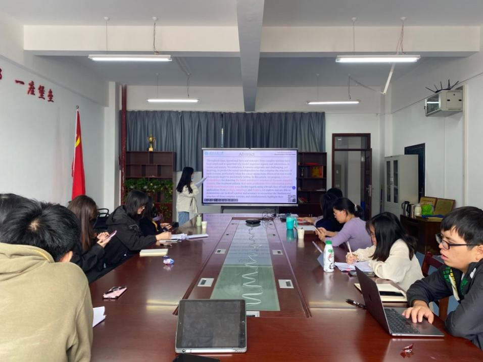 应用数学与交叉科学研究中心复杂网络团队于2023年10月第4周进行每周小组组会,小组全体成员和各位导师共同参加。在这次组会上,由三名研二员工分别汇报自己的研究进展,然后老师与同学们对汇报内容进行学术探讨,并对存在的问题给出相应的指导和建议。
