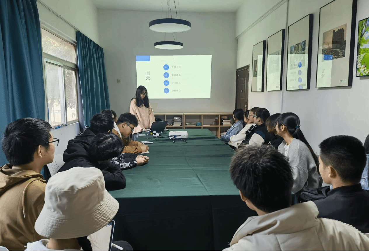 张雅祺介绍了竞赛的主要内容。其一是建模--了解问题本身的背景、意义等信息,并将其转述为数学语言;其二是编程--将前一步骤的数学语言转换成代码,并在之后的操作中得出结论或者是进行验证;其三是论文--将前两个步骤的过程、结果写进论文,并总结出论文摘要,让同学对数学建模有了进一步的认识。