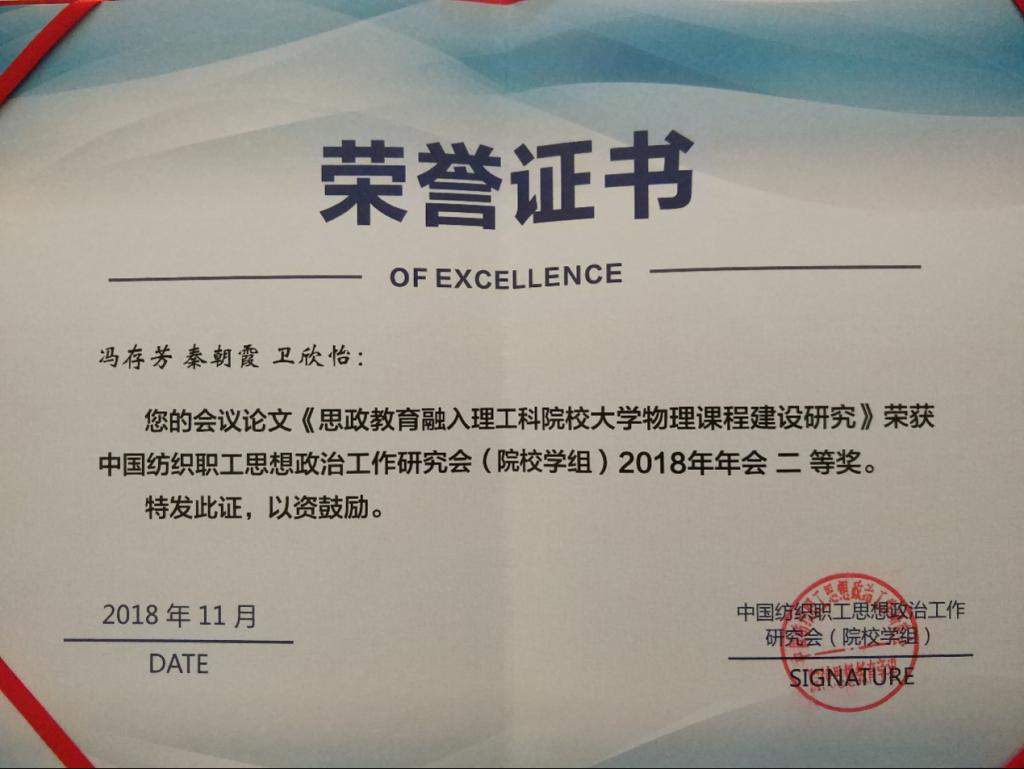 经专家组审核评议,公司推荐大学物理课程思政教学团队成员冯存芳老师的论文《思政教育融入理工科院校大学物理课程建设研究》荣获二等奖。此次获奖充分彰显了公司教师扎实的思想政治工作理论功底和教学素养,对推进课程思政教学改革的全面实施,打造物理课程与思政理论课同向同行、协同育人的新格局打下了坚实的基础。