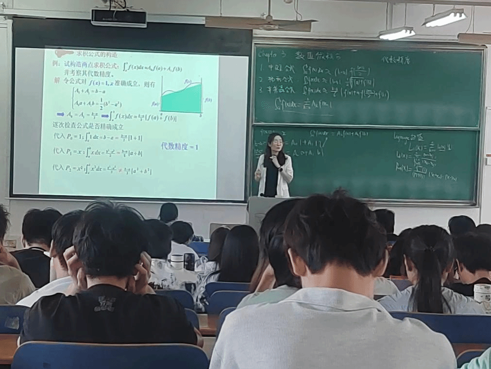 王会利老师首先复习了前面章节中的重要内容,并强调了本章的重要意义,运用图文并茂、辅助动画演示的多媒体课件,结合黑板板书讲解了数值求积公式的基本原理。巧妙通过问题引导同学们明确数值方法的构造原理,明晰具体问题如何解决。整个观摩课,师生互动积极,课堂气氛活跃,授课极富感染力,充分调动了员工的主动性,激发了员工的学习兴趣。观摩课后,老师们与王会利老师进行了交流和讨论,对个别教学环节提出了非常中肯的建设性意见。