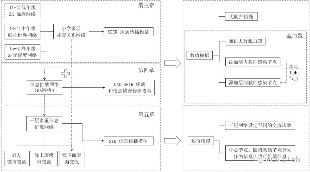 李朝辉:文章根据小员工不同年级的社交活动特点,将其构建为三层社交关系网络。分别在此网络结构基础上构建实验中的网络模型,如第三章中的社交关系网络,第四章中的信息和疾病耦合的两层多重网络,第五章中线上好友微信交流子网络、线上班级群交流子网络,线下接触面对面交流子网络,三层子网络耦合的多重网络结构。