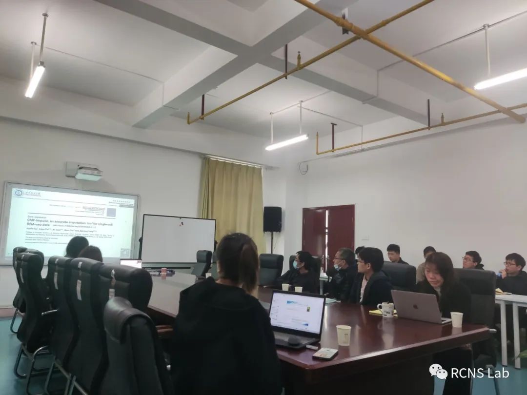 熊珍珍(线上汇报):该文献是考虑基因和细胞之间的关联提出的基于协同矩阵分解的单细胞测序数据插补方法。该方法首先将所使用的数据集按照细胞标记的可信度分为金银铜标准,接下来通过三个相似度度量:欧几里得距离,切比雪夫距离和皮尔逊相关系数,分别计算细胞相似性矩阵和基因相似性矩阵。CMF-Impute算法的目的,就是找出细胞特征矩阵和基因特征矩阵,使两个特征矩阵的乘积最接近原始矩阵,以此重新定义基因表达矩阵,最终达到数据插补目的。