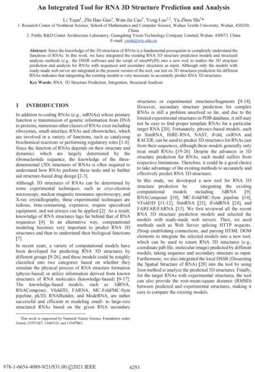 An Integrated Tool for RNA 3D Structure Prediction and Analysis |