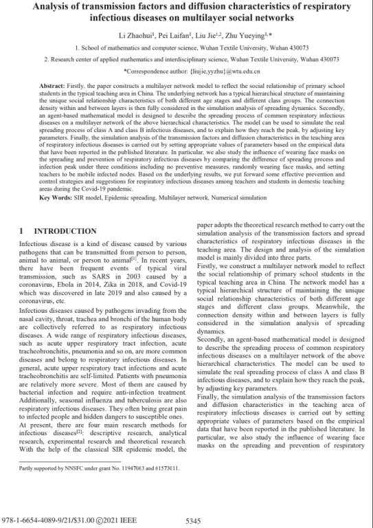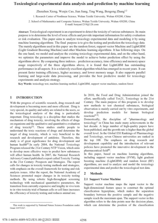 Toxicological experimental data analysis and prediction by machine learning Analysis of transmission factors and diffusion characteristics of respiratory infectious diseases on Multilayer social networks |