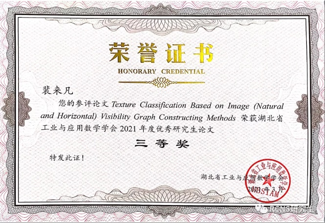 湖北省工业与应用数学学会优秀研究生论文三等奖 |